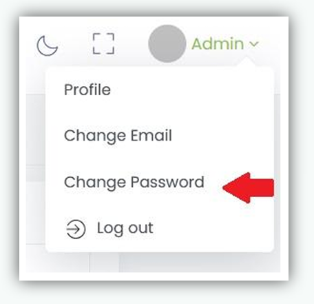 - Navigate to Admin Profile page. Click Admin in the Top Navigation Bar, then select Change Password from the drop-down menu