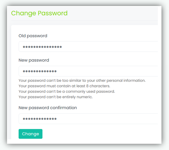 - Click Change to save and update the password