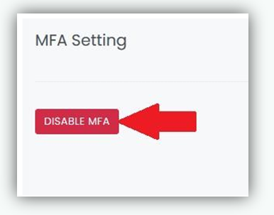 - Click on Disable MFA button in MFA Settings section.