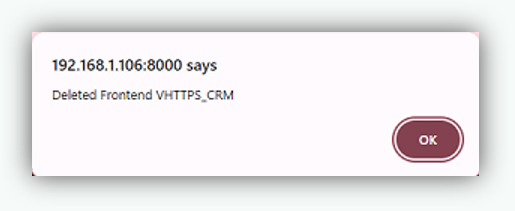 - A confirmation popup message appears to confirm that the Frontend server has been successfully deleted.