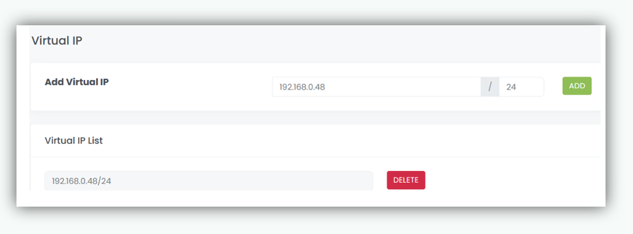 - Enter the IP address in to the add virtual IP text box. Click on the ADD button.