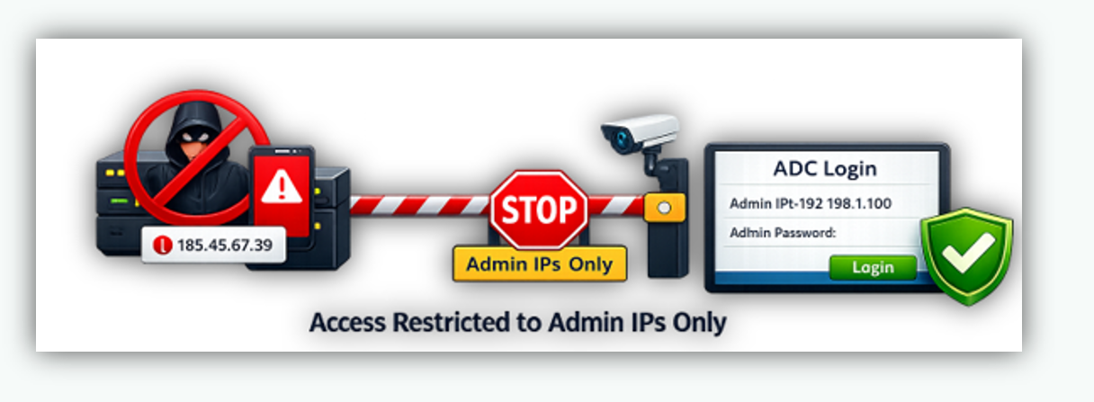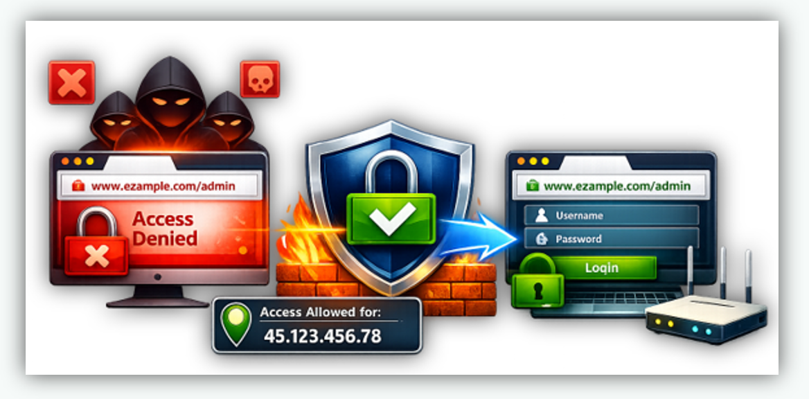 This ensures that admin URLs can only be accessed from trusted IPs, significantly reducing the risk of unauthorized access.