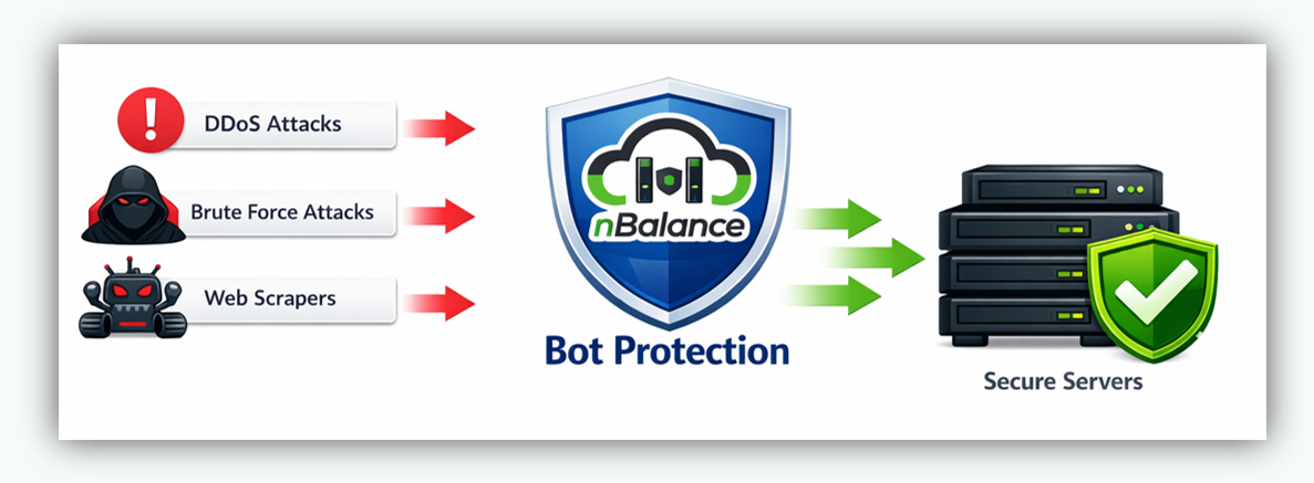 Blocks unauthorized or harmful traffic. nBalance protects your client’s digital storefront like a 24/7 security guard—stopping threats before they even reach the server.