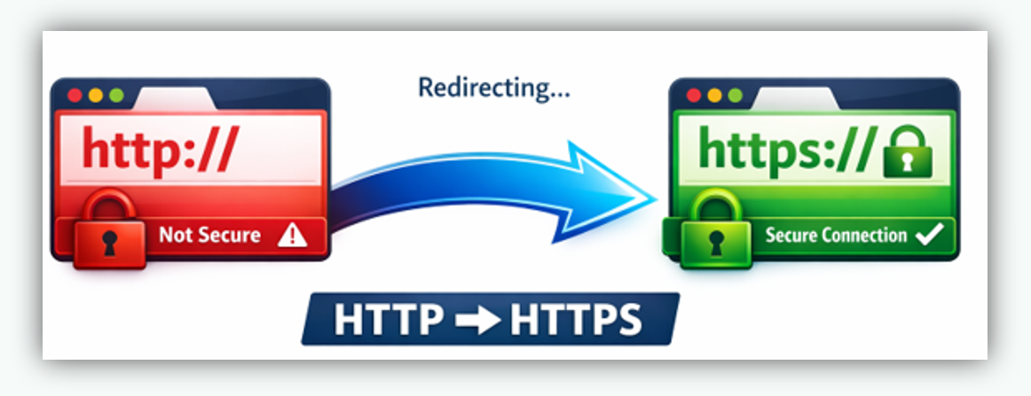 This ensures secure communication by forcing clients to access applications using HTTPS when required.
