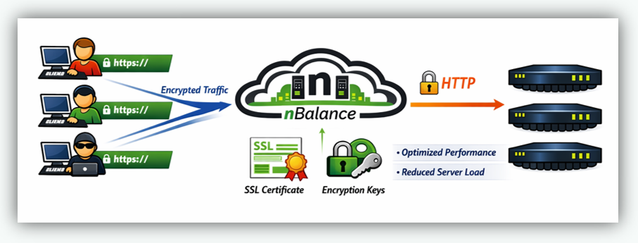 - Every incoming connection first hits nBalance’s reverse proxy engine.