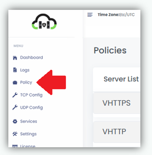 Click on Policy from the left navigation menu.