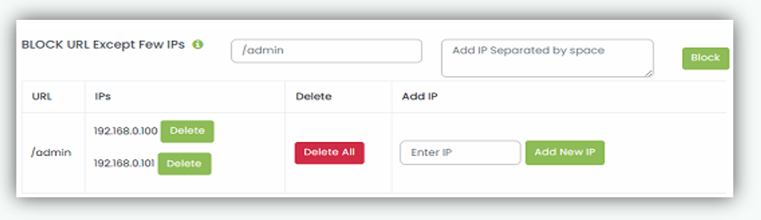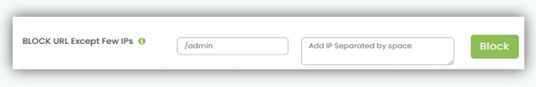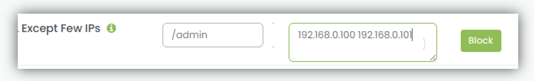 - Enter the admin URL suffix (e.g /admin) and IP address and click Block button. Example /admin and IP address 192.168.0.100 192.168.0.101